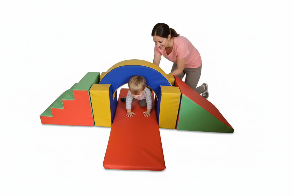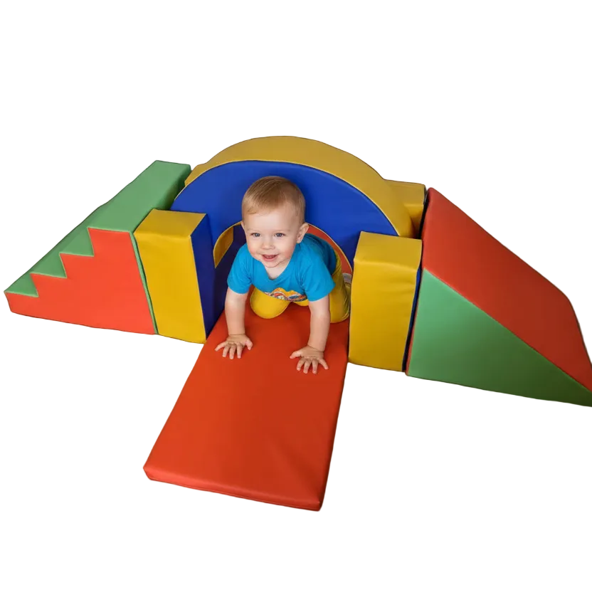 Este set de psicomotricidad, de los más solicitados, une a su gran interés, su gran seguridad. El especialista descubrirá la riqueza de sus potencialidades, desde su utilización específica en el ámbito de la rehabilitación hasta la exploración espontánea por parte de los niños. Posibilita experiencias de saltar, trepar, deslizarse y conducirlo a juegos simbólicos.