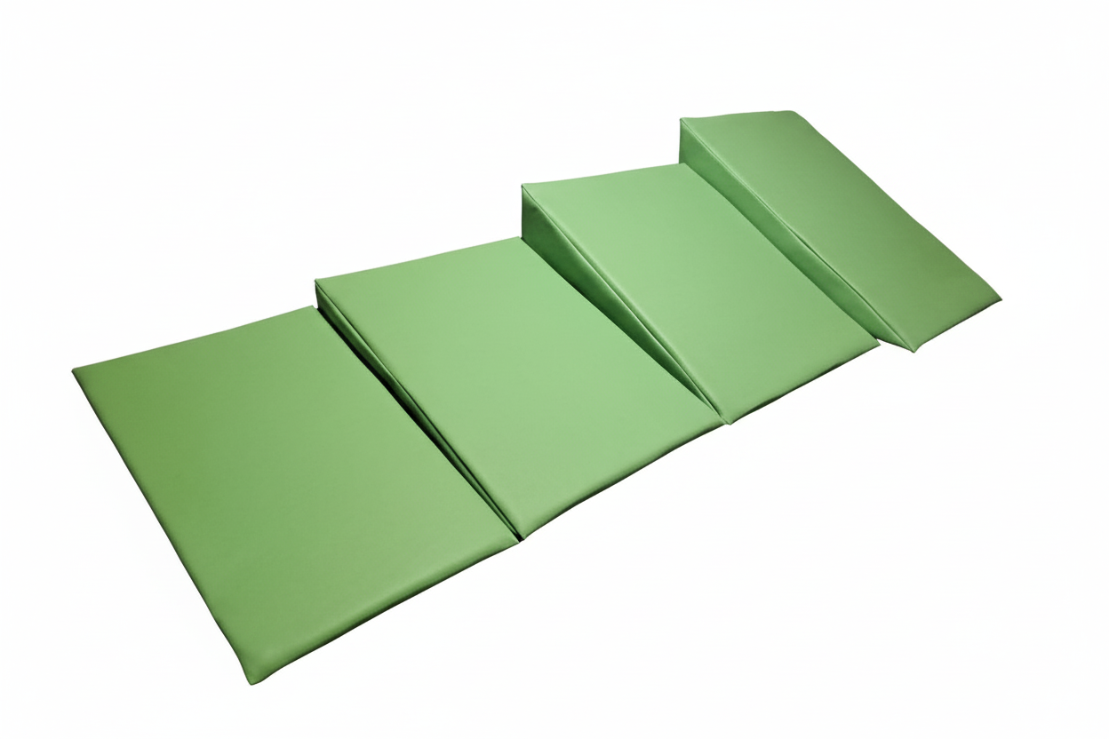 • Cuñas en diferentes tamaños para mayor comodidad de los pacientes y del terapeuta para llevar a cabo los tratamientos. La rehabilitación de espalda es uno de los ejercicios que el terapeuta puede ejercer al paciente con las cuñas, se utiliza para el reclinación y alzamiento del paciente.